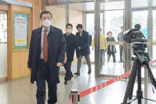 [½Åµ¿¾Æ¹æ¼Û=°¼º´ë ±âÀÚ] À̿뼷 ±¤ÁÖ±¤¿ª½ÃÀåÀÌ 2ÀÏ ¿ÀÀü ½Ãû 1Ãþ ·Îºñ¿¡ Äڷγª19 È®»ê¹æÁö¸¦ À§ÇØ ¼³Ä¡µÈ ¿°¨Áö Ä«¸Þ¶ó¸¦ Áö³ª Ãâ±ÙÇÏ¸ç ¼³Ä¡ ±¸¿ªÀ» Á¡°ËÇϰí ÀÖ´Ù.