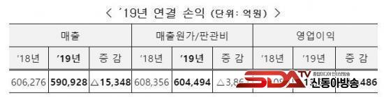¡Û ¡¯19³â ¿¬°á±âÁØ ¸ÅÃâ 59Á¶ 928¾ï¿ø, ¿µ¾÷¼Õ½Ç 1Á¶ 3,566¾ï¿øÀ¸·Î Àü³â´ëºñ ¸ÅÃâÀº 1Á¶ 5,348¾ï¿ø, ¿µ¾÷ÀÌÀÍÀº 1Á¶ 1,486¾ï¿ø °¨¼Ò