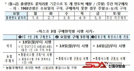 Ãâ»ý¿¬µµ ³¡ÀÚ¸®¿¡ µû¶ó ¸¶½ºÅ© ±¸¸Å ¿äÀϺ° 5ºÎÁ¦¸¦ Àû¿ëÇÑ´Ù. Ãâ»ý¿¬µµÀÇ ¸¶Áö¸· ÀÚ¸® ¼ýÀÚ°¡ 1°ú 6ÀÌ¸é ¿ù¿äÀÏ, 2¿Í 7À̸é È¿äÀÏ, 3°ú 8ÀÌ¸é ¼ö¿äÀÏ, 4¿Í 9ÀÌ¸é ¸ñ¿äÀÏ, 5¿Í 0ÀÌ¸é ±Ý¿äÀÏ¿¡¸¸ ±¸¸ÅÇÒ ¼ö ÀÖ´Ù.