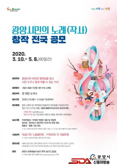 À̹ø °ø¸ð¿¡´Â Àü ±¹¹Î ´©±¸³ª Âü¿©°¡ °¡´ÉÇϸç, ±¤¾ç½ÃÀÇ Áö¿ªÀû Ư¼º, ½Ã¹ÎÀÇ Á¤¼¿Í ¹®È°¡ ¹Ý¿µµÇ°í ±¤¾ç½ÃÀÇ Á¤Ã¼¼º°ú ¹Ì·¡ ºñÀüÀÌ Á¦½ÃµÈ ´©±¸³ª ºÎ¸£±â ½¬¿î °£°áÇÑ ÇüÅÂÀÇ °¡»ç¸¦ °ø¸ðÇÒ ¿¹Á¤ÀÌ´Ù.