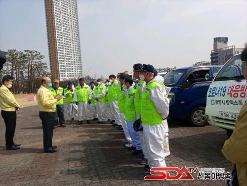 9°³ ¹æ¿ª¾÷ü ´ëÇ¥¿Í ¿ä¿øµéÀº ±¤¾ç½Ãû ¾Õ ½Ã¹Î±¤Àå¿¡ ¸ð¿© ¹ß´ë½ÄÀ» °®°í, Àα¸¹ÐÁýÁö¿ª°ú ½ÃÀå, »ó°¡ÁÖº¯, ¾ÆÆÄÆ® ´ÜÁö µîÀ» ´ë»óÀ¸·Î Â÷·®¿ë Ãʹ̸³ÀÚ »ìÆ÷±â¿Í À̵¿½Ä Ãʹ̸³ÀÚ »ìÆ÷±â µî 18´ëÀÇ Àåºñ¸¦ µ¿¿øÇØ ´ë´ëÀûÀÎ ¹æ¿ªÈ°µ¿À» ÆîÃÆ´Ù.
