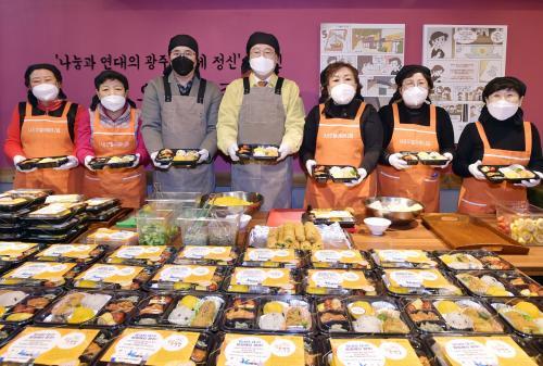 [½Åµ¿¾Æ¹æ¼Û=°¼º´ë ±âÀÚ] À̿뼷 ±¤ÁÖ±¤¿ª½ÃÀåÀÌ 16ÀÏ ¿ÀÀü µ¿±¸ ±¤ÁÖÁÖ¸Ô¹ä 1È£ Àü¹®Á¡ ¹äÄܼƮ(Bob Concert)¿¡¼ ¿À¿ù¾î¸Ó´ÏÁý ȸ¿ø, °È¿ ¸ð¾Ø¹Ì¶óŬÀÇ¿ø ¿øÀå µî°ú ¡®Äڷγª19¡¯ Áö¿ª°ÅÁ¡º´¿øÀ¸·Î ¿î¿µ ÁßÀÎ ´ë±¸ °è¸í´ëÇб³ µ¿»êÀÇ·á¿ø¿¡ Àü´ÞÇϱâ À§ÇØ Á¤¼º½º·´°Ô ¸¸µç ÁÖ¸Ô¹äÀ» µé¾î º¸À̰í ÀÖ´Ù.