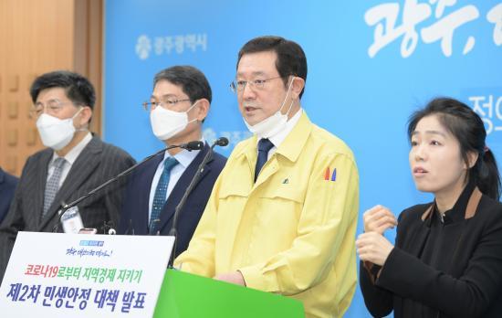 [½Åµ¿¾Æ¹æ¼Û=°­¼º´ë ±âÀÚ] À̿뼷 ±¤ÁÖ±¤¿ª½ÃÀåÀÌ 19ÀÏ ¿ÀÈÄ ½Ãû 5Ãþ ºê¸®Çη뿡¼­ ¡®Äڷγª19·ÎºÎÅÍ Áö¿ª°æÁ¦ Áö۱â Á¦2Â÷ ¹Î»ý¾ÈÁ¤´ëÃ¥¡¯À¸·Î ½Ã¹Î ´ë´Ù¼ö¿¡°Ô ÇýÅÃÀÌ µ¹¾Æ°¡´Â °ø°ø¿ä±Ý ÀÏÁ¦ µ¿°á µî 3´ë ¹Î»ý¾ÈÁ¤´ëÃ¥ ¹ßÇ¥¸¦ Çϰí ÀÖ´Ù.