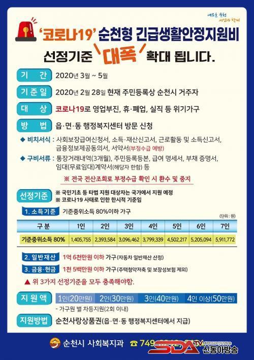 Çã¼® ¼øÃµ½ÃÀåÀº ¡°À̹ø ¼±Á¤±âÁØ È®´ë´Â Á¤ºÎÀÇ Äڷγª19 ´ëÀÀ ÇѽÃÀû ±ä±Þº¹ÁöÁö¿øÁ¦µµ ±âÁØ¿ÏÈ¿¡ µû¶ó ¼øÃµÇü ±ä±Þ»ýȰ¾ÈÁ¤Áö¿ø ¼±Á¤±âÁصµ ¹ýÀû±âÁØ º¸´Ù Á» ´õ Æø³ÐÀº È®´ë°¡ ÇÊ¿äÇØ Á¶Á¤Çß´Ù¡±¸ç ¡°´ë´ëÀûÀÎ È«º¸¸¦ ÅëÇØ ¸ô¶ó¼ ½ÅûÀ» ¸øÇÏ´Â °æ¿ì°¡ ¾øµµ·Ï öÀúÈ÷ È«º¸Çϰڴ١±°í ¸»Çß´Ù.