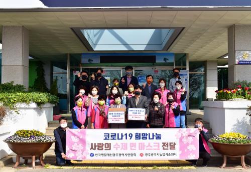 ¾çÈñ¿ ±¤ÁÖ±¤¿ª½Ã³ó¾÷±â¼ú¼¾ÅͼÒÀåÀº ¡°Àç´É±âºÎ·Î Á¦ÀÛµÈ ¼öÁ¦ ¸é¸¶½ºÅ©°¡ Äڷγª19·Î ¾î·Á¿òÀ» °Þ°í ÀÖ´Â ´ë±¸¡¤°æºÏÀÇ Ãë¾à°èÃþ°ú ¾î¸£½Å¿¡°Ô µµ¿òÀÌ µÆÀ¸¸é ÁÁ°Ú´Ù¡±¸ç ¡°»ýȰ°³¼±È¸¿øµéÀÇ ¶æÀ» Àß Àü´ÞÇϰڴ١±°í ¸»Çß´Ù.