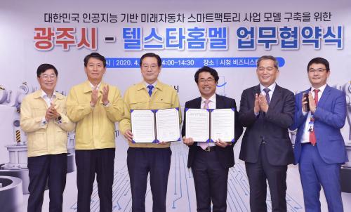 [½Åµ¿¾Æ¹æ¼Û=°¼º´ë ±âÀÚ] À̿뼷 ±¤ÁÖ±¤¿ª½ÃÀåÀÌ 7ÀÏ ¿ÀÈÄ ½Ãû 3Ãþ ºñÁî´Ï½º·ë¿¡¼ ½º¸¶Æ®ÆÑÅ丮 ¼Ö·ç¼Ç °³¹ß¾÷üÀÎ ÅÚ½ºÅ¸-Ȩ¸á ÀÓº´ÈÆ ´ëÇ¥ÀÌ»ç¿Í ÀΰøÁö´É(AI) ±â¹Ý ¹Ì·¡ÀÚµ¿Â÷ ½º¸¶Æ®ÆÑÅ丮 »ç¾÷¸ðµ¨ ±¸ÃàÀ» À§ÇÑ ¾÷¹«Çù¾à¼¿¡ ¼¸íÇÑ ÈÄ ±â³äÃÔ¿µÀ» Çϰí ÀÖ´Ù.