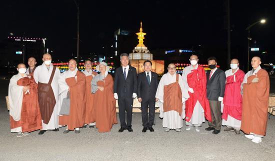 | | »çÁø= ºÎó´Ô ¿À½Å ³¯À» ±â³äÇØ 29ÀÏ Àú³á ¿©¼ö½Ãû ¾Õ ·ÎÅ͸®¿¡¼ ¿¸° ¿¬µîÁ¡µî½Ä¿¡¼ Âü¼®ÀÚµéÀÌ ±â³äÃÔ¿µÀ» Çϰí ÀÖ´Ù. |