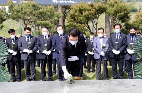 À̾î Á¦2¹¦¿ª°ú 5¡¤18±¸¹¦Áö¸¦ ã¾Æ 5¡¤18À¯°øÀÚ¿Í ¹ÎÁ·¡¤¹ÎÁÖ¿»çÀÇ ¹¦¸¦ Âü¹èÇß´Ù.