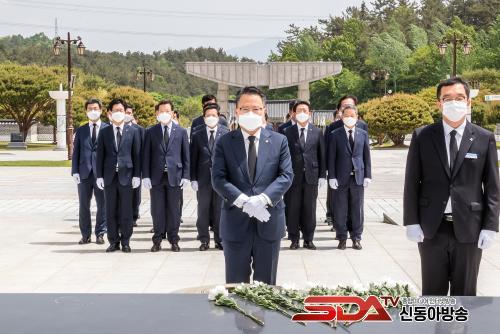[½Åµ¿¾Æ¹æ¼Û=°¼º´ë ±âÀÚ] ¼ÛÁ¾¿í ±¤ÁÖÀºÇàÀå°ú ÀÓÁ÷¿ø 50¿©¸íÀº 14ÀÏ 5¡¤18 ¹ÎÁÖȿ 40ÁÖ³âÀ» ¸Â¾Æ ±¹¸³5¡¤18¹ÎÁÖ¹¦Áö¸¦ Âü¹èÇÏ¸ç ¹ÎÁÖ¿µ·ÉµéÀ» Ã߸ðÇϰí, ¹ÎÁÖȿÀÇ ¼þ°íÇÑ Èñ»ýÁ¤½ÅÀ» ±â·È´Ù.