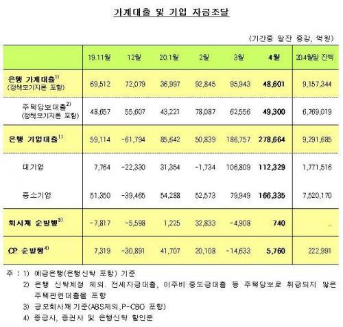 4¿ù Áß ÀºÇà ±â¾÷´ëÃâ Áõ°¡ ±Ô¸ð´Â 27Á¶ 9000¾ï¿øÀ¸·Î, Àü¿ù(18Á¶ 7000¾ï¿ø) ´ëºñ 9Á¶ 2000¾ï¿ø È®´ëµÆÀ¸¸ç. ÀÌ´Â 2009³â 6¿ù ¼Óº¸ Åë°è°¡ ¹ßÇ¥µÈ ÀÌÈÄ ÃÖ´ë ±Ô¸ð´Ù.