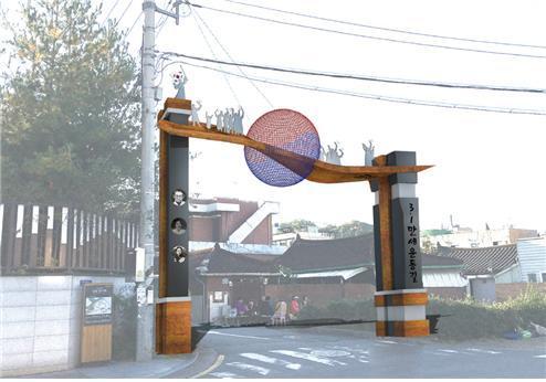3.1¸¸¼¼¿îµ¿±æ »ó¡ Á¶Çü¹°Àº Áö³ 2018³â ÇàÁ¤¾ÈÀüºÎ ÁÖ°üÀ¸·Î ½Ç½ÃµÈ ¡®3.1¿îµ¿ ¹× ´ëÇѹα¹ ÀÓ½ÃÁ¤ºÎ ¼ö¸³ 100Áֳ⠱â³ä»ç¾÷¡¯ °ø¸ð»ç¾÷ ¼±Á¤¿¡ µû¸¥ °ÍÀ¸·Î, »ç¾÷ºñ 1¾ï¿ø °¡·®À» ÅõÀÔÇØ 3.1¸¸¼¼¿îµ¿±æ ÁøÀԷο¡ °¢°¢ 2°³ÀÇ °ÔÀÌÆ®¸¦ ¼³Ä¡ÇÏ´Â »ç¾÷ÀÌ´Ù.