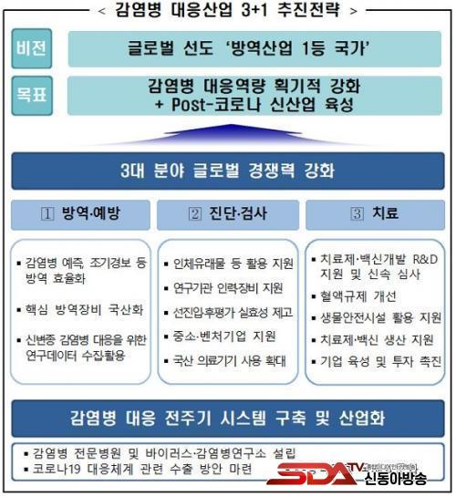 Á¤ºÎ´Â ÀÌ¿¡µû¶ó °¨¿°º´ ´ëÀÀ»ê¾÷À» ¹æ¿ª¡¤¿¹¹æ, Áø´Ü¡¤°Ë»ç, Ä¡·á, ÀüÁֱ⠽ýºÅÛ ±¸Ãà µî 3+1 Àü·«À¸·Î ÃßÁøÇϱâ·Î Çß´Ù.Äڷγª19¸¦ °è±â·Î K-¹æ¿ªÀÌ Àü ¼¼°è ¸ð¹ü»ç·Ê·Î Æò°¡¹Þ°í ÀÖ´Â °¡¿îµ¥ Á¤ºÎ°¡ °¨¿°º´ ´ëÀÀ »ê¾÷À» ¹Ì·¡ ¸Ô°Å¸®·Î À°¼ºÇÑ´Ù.
