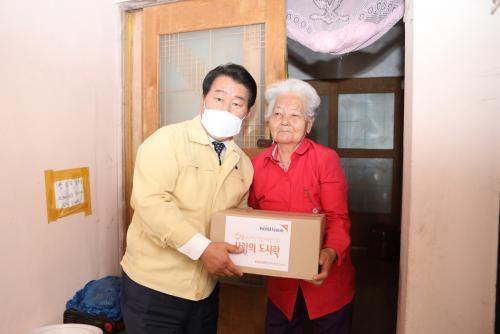 À̳¯ »ç¶ûÀÇ µµ½Ã¶ôÀ» ¹ÞÀ¸½Å ¾î¸£½ÅÀº ¡°Äڷγª·Î ÀÎÇØ ¹Û¿¡ ³ª°¡±â°¡ °ÆÁ¤µÅ¼­ ¹ÝÂù ¸¸µé±âµµ Èûµé¾ú´Âµ¥, ÀÌ·¸°Ô Á¤¼º°ú »ç¶ûÀ¸·Î ¸¸µç µµ½Ã¶ôÀ» ÀüÇØÁ༭ ³Ê¹« °í¸¿´Ù¡±°í ¸»Çß´Ù.