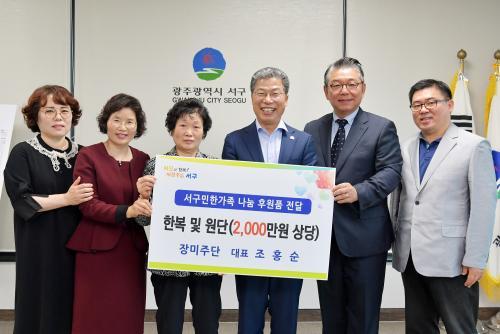 [½Åµ¿¾Æ¹æ¼Û=°¼º´ë ±âÀÚ] ±¤ÁÖ ¼±¸(±¸Ã»Àå ¼´ë¼®)´Â Áö³ 22ÀÏ Àå¹ÌÁÖ´Ü(´ëÇ¥ Á¶È«¼ø)·ÎºÎÅÍ ¼±¸¹Î ÇѰ¡Á·³ª´® ÈÄ¿øÇ°À¸·Î ÇѺ¹ ¹× ¿ø´Ü(2,000¸¸¿ø »ó´ç)À» ±âŹ¹Þ°í ¾î·Á¿î ÀÌ¿ôÀ» À§ÇØ ÈÄ¿øÇØ Áֽŵ¥ ´ëÇØ °¨»çÀÇ ¸¶À½À» ÀüÇß´Ù°í 24ÀÏ ¹àÇû´Ù.