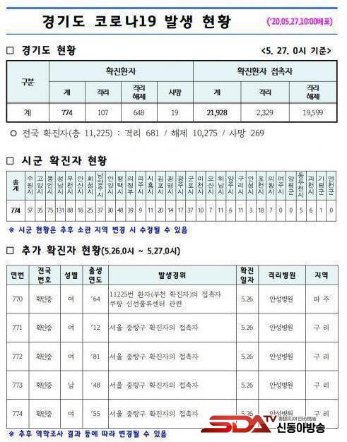 »çÁø= °æ±âµµ Äڷγª 19 ¹ß»ý ÇöȲ(2020.05.27.)