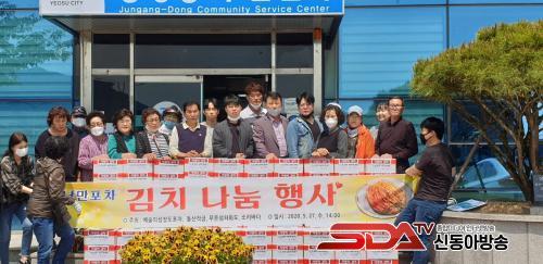 Áö³ 27ÀÏ ¿ÀÈÄ 2½Ã Á¤ÀνÄ(µ¹»êÀÛ±Ý), °´ëÀÏ(ÀåµµÆ÷Â÷), °û½Å¿µ( Ǫ¸¥¼¶ ÇÏȵµ) µî ¿©¼ö³¶¸¸Æ÷Â÷ ¿î¿µÀÚµéÀÌ Äڷγª19 ±Øº¹À» À§ÇÑ ±èÄ¡³ª´® Çà»ç¸¦ ¿°í Áß¾Óµ¿ Àú¼Òµæ, µ¶°Å³ëÀÎ µî Ãë¾à°èÃþ 100¼¼´ë¿¡°Ô ±èÄ¡(3kg) 100¹Ú½º¸¦ Àü´ÞÇß´Ù.