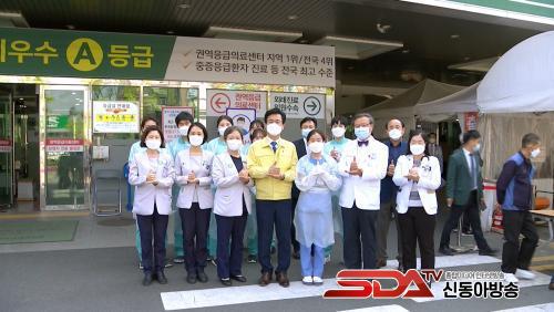 °Ç¾ç´ëº´¿øÀ» ãÀº Çã ½ÃÀåÀº ¼±º°Áø·á¼Ò¿Í ¾È½ÉÁø·á¼Ò, °¨¿°°ü¸®½ÇÀ» Â÷·Ê·Î ¹æ¹®ÇØ ÀÇ·áÁøµé°ú °£´ãȸ¸¦ °®°í ¾Ö·Î»çÇ×À» µé¾ú´Ù. ±×°£ÀÇ ³ë°í¸¦ °Ý·ÁÇÑ Çã ½ÃÀåÀº ¡®´öºÐ¿¡ 縰Áö¡¯Ä·ÆäÀο¡ Âü¿©ÇØ ÁöÄ£ ÀÇ·áÀεéÀ» ÀÀ¿øÇß´Ù.