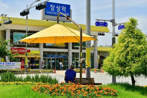[½Åµ¿¾Æ¹æ¼Û=°­¼º´ë ±âÀÚ] À强 ±º¹ÎÀÌ À强¿ª Àαٿ¡ ¼³Ä¡µÈ ¡®¿»·Î¿ì ±×´Ã¸·¡¯¿¡¼­ ´õÀ§¸¦ ½ÄÈ÷°í ÀÖ´Ù. ¡®¿»·Î¿ì½ÃƼ À强¡¯ÀÇ À̹ÌÁö¸¦ ÀÔÀº ³ë¶õ»ö ±×´Ã¸·ÀÌ µµ½Ã¹Ì°üÀ» »ê¶æÇÏ°Ô Çϰí ÀÖ´Ù.