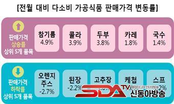 ´Ù¼Òºñ °¡°ø½Äǰ 30°³ ǰ¸ñ Áß Àü¿ù(¡¯20³â 4¿ù) ´ëºñ °¡°ÝÀÌ »ó½ÂÇÑ Ç°¸ñÀº Âü±â¸§(4.9%)¡¤Äݶó(3.9%)¡¤µÎºÎ(3.8%) µî 16°³¿´´Ù. ƯÈ÷, ¾î¹¬Àº ÃÖ±Ù 3°³¿ù ¿¬¼Ó °¡°ÝÀÌ ¿Ã¶ú°í, Áö³ 2¿ù ÀÌÈÄ Ç϶ôÇß´ø µÎºÎÀÇ °¡°ÝÀº 5¿ù µé¾î »ó½ÂÇß´Ù.