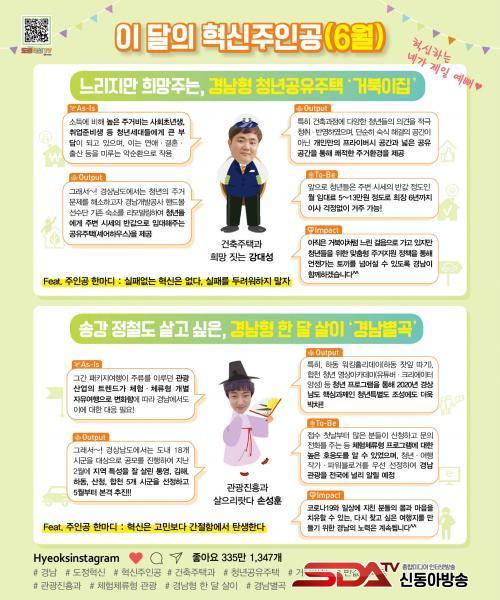 ¡®Çõ½ÅÁÖÀΰø¡¯Àº °æ³²µµÀÇ Çõ½ÅÀ» À̲ö ´ã´ç°ø¹«¿øÀ¸·Î, µµÁ¤Çõ½ÅÃßÁø´ÜÀÌ Áö³ 1¿ùºÎÅÍ ¸Å¿ù 2°ÇÀÇ Çõ½Å»ç·Ê¸¦ ¹ß±¼¡¤¼±Á¤ÇØ 6¿ù ÇöÀç ±âÁØ ÃÑ 12°ÇÀ» ¹ß±¼ÇßÀ¸¸ç, ÀÌ¿¡ µû¶ó Çõ½ÅÁÖÀΰø 13¸íÀ» ¼±Á¤Çß´Ù.