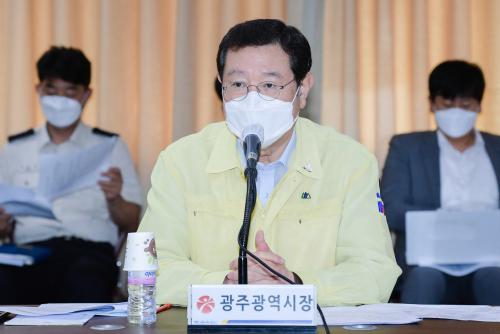[½Åµ¿¾Æ¹æ¼Û=°­¼º´ë ±âÀÚ] À̿뼷 ±¤ÁÖ±¤¿ª½ÃÀåÀº 1ÀÏ ¿ÀÈÄ ½Ãû ÁßȸÀǽǿ¡¼­ Äڷγª19 Áö¿ªÈ®»ê Â÷´ÜÀ» À§ÇÑ °ü°è±â°ü‧´Üü ÇÕµ¿ ±ä±Þ´ëåȸÀǸ¦ ¿­°í Ãß°¡ È®ÁøÀÚ ¹ß»ý »óȲÀ» °øÀ¯ÇÏ´Â ÇÑÆí Äڷγª19 È®»ê Â÷´ÜÀ» À§ÇÑ ´ëÀÀ¹æ¾ÈÀ» ³íÀÇÇß´Ù.
