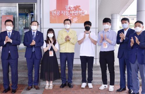 [½Åµ¿¾Æ¹æ¼Û=°¼º´ë ±âÀÚ] À̿뼷 ±¤ÁÖ±¤¿ª½ÃÀåÀÌ 2ÀÏ ¿ÀÀü ºÏ±¸ ±¤ÁÖ°úÇбâ¼úÁøÈï¿ø¿¡¼ ¿¸° ±¤ÁÖÀΰøÁö´É»ç°üÇб³ °³±³½Ä¿¡ Âü¼®ÇØ ±èµ¿Âù ½ÃÀÇȸ ÀÇÀå, ¹®ÀÎ ºÏ±¸Ã»Àå, À̵ÎÈñ ¸ÚÀïÀÌ»çÀÚó·³ ´ëÇ¥ µî ³»ºóµé°ú ±â³äÃÔ¿µÀ» Çϰí ÀÖ´Ù.