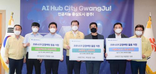 [½Åµ¿¾Æ¹æ¼Û=°¼º´ë ±âÀÚ] À̿뼷 ±¤ÁÖ±¤¿ª½ÃÀåÀº 10ÀÏ ¿ÀÈÄ ½Ãû Á¢°ß½Ç¿¡¼ ¢ß¿¡Äڵ帲, ¢ß´õ¿Ã¹Ù¸¥, ¢ßÇǵå¹Ú½º¿ÍÀÇ ±âºÎ¹°Ç° ±âŹ½Ä¿¡ Âü¼®ÇØ ¡®Äڷγª19¡¯ È®»ê ¹æÁö¸¦ À§ÇÑ °¨¿° ¿¹¹æ¹°Ç°À» Àü´Þ¹ÞÀº µÚ ±â³äÃÔ¿µÀ» Çϰí ÀÖ´Ù.
