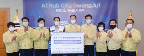 [½Åµ¿¾Æ¹æ¼Û=°¼º´ë ±âÀÚ] À̿뼷 ±¤ÁÖ±¤¿ª½ÃÀåÀÌ 15ÀÏ ¿ÀÈÄ ½Ãû Á¢°ß½Ç¿¡¼ ¹ÚÈï¼® ´ëÇÑÀû½ÊÀÚ»ç ±¤ÁÖÀü³²Áö»ç ȸÀåÀ¸·ÎºÎÅÍ ¹ß´ÞÀå¾ÖÀÎ ¼¼´ë¸¦ Áö¿øÇϱâ À§ÇÑ ±¤ÁÖ»ó»ýÄ«µå¸¦ Àü´Þ¹ÞÀº µÚ ±â³äÃÔ¿µÀ» Çϰí ÀÖ´Ù.