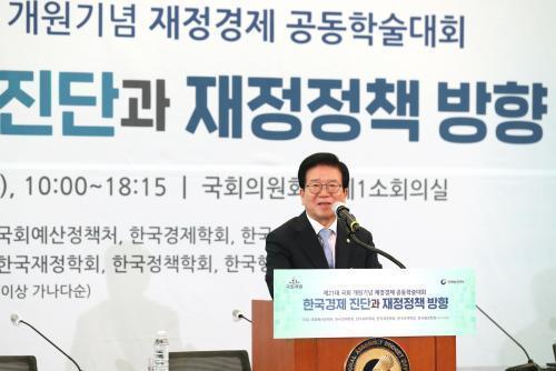 [½Åµ¿¾Æ¹æ¼Û=³²»ó¹Î ±âÀÚ] ¹Úº´¼® ±¹È¸ÀÇÀåÀº 16ÀÏ ±¹È¸¿¹»êÁ¤Ã¥Ã³°¡ ÁÖÃÖÇÑ ¡®Á¦21´ë ±¹È¸ °³¿ø±â³ä ÀçÁ¤°æÁ¦ °øµ¿Çмú´ëȸ¡¯¿¡ Âü¼®ÇØ ¡°Äڷγª19 ÀÌÈÄ¿¡ ½Ã´ë°¡ ¾î¶»°Ô º¯ÇÒÁö ´©±¸µµ ¿¹ÃøÇÏÁö ¸øÇϰí ÀÖ´Ù¡±¸é¼ ¡°»õ·Î¿î ½Ã´ë¿¡ »õ·Î¿î Á¤Ã¥ ÆÐ·¯´ÙÀÓÀ» ã¾Æ¾ß ÇÒ ¶§¡±¶ó°í ¸»Çß´Ù.