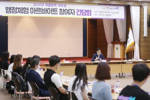 °£´ãȸ¿¡ Âü¼®ÇÑ ÇÑ ÇлýÀº¡°¹æÇбⰣ µ¿¾È¿¡ ¾Æ¸£¹ÙÀÌÆ®¸¦ ±¸ÇϱⰡ ¾î·Á¿îµ¥ ÀÌ·¸°Ô °ü°ø¼¿¡¼ ÇàÁ¤Ã¼ÇèÀ» ÇÒ ¼ö ÀÖ´Â ÁÁÀº ±âȸ¸¦ ¸¸µé¾î ÁֽŠÀǿսÿ¡ °¨»çµå¸°´Ù¡±¸ç, ¡°ÇàÁ¤¾÷¹«¸¦ ÇÏ¸é¼ ½Ãû¾÷¹«¿¡ ´ëÇÏ¿© Á¶±ÝÀº ÀÌÇØÇÒ ¼ö ÀÖ°Ô µÇ¾ú°í, ƯÈ÷, ½ÃƼÅõ¾î¸¦ ÅëÇØ ¿ì¸®½ÃÀÇ °ü±¤Áö¿Í ¹®ÈÀ縦 ޹æÇÏ¸é¼ ³»°¡ »ì°í ÀÖ´Â Áö¿ª¿¡ ´ëÇØ ´õ Àß ¾Ë°Ô µÇ¾ú´Ù¡±°í ¼Ò°¨À» ¹àÇû´Ù.