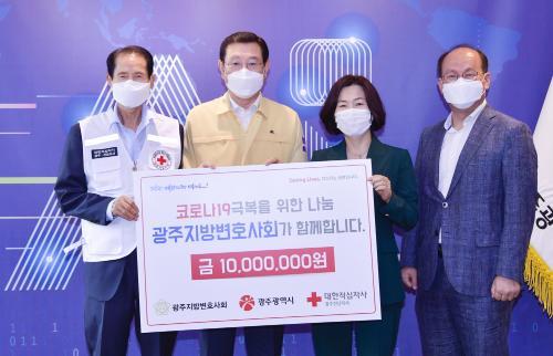 [½Åµ¿¾Æ¹æ¼Û=°­¼º´ë ±âÀÚ] À̿뼷 ±¤ÁÖ±¤¿ª½ÃÀåÀÌ 28ÀÏ ¿ÀÀü ½Ãû Á¢°ß½Ç¿¡¼­ ÀÓ¼±¼÷ ±¤ÁÖÁö¹æº¯È£»çȸ ȸÀåÀ¸·ÎºÎÅÍ Äڷγª19 À§±â±Øº¹°ú ¼Ò¿Ü°èÃþ Áö¿øÀ» À§ÇÑ ¼º±Ý 1000¸¸¿øÀ» Àü´Þ¹Þ°í ÀÖ´Ù.