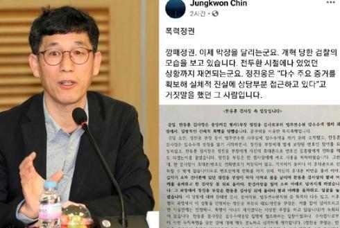 ÀÌ¿¡ ´ëÇØ ÁøÁß±Ç Àü µ¿¾ç´ë ±³¼ö°¡ 29ÀÏ ÆäÀ̽ººÏÀ» ÅëÇØ "°Ë»çÀåÀÌ ÆøÇàÀ» ´çÇÏ´Â ÆÇÀε¥ ÀϹݽùεéÀ̾ß"¶ó¸ç "¹üÅеéÀº Æ÷Åä¶óÀο¡µµ ¾È ¼°í °ø¼ÒÀåµµ °ø°³ ¾È µÈ´Ù. ÇÏÁö¸¸ °³ÅеéÀº °ËÂû¿¡°Ô À뱂 °°Àº °Å ±â´ëÇÏÁö ¸¶¼¼¿ä"¶ó°í ºñ²¿¾Ò´Ù. À̾î "º¸¼ÌÁÒ? ÀÚ±â Æí ¾Æ´Ï¸é °Ë»çÀåµµ ÆøÇàÇÑ´Ù. ÀÌ°Ô Á¶±¹ Ç¥ °³Çõ°ËÂûÀÇ ¸ð½À"À̶ó¸ç "³ë¹«ÇöÀÇ ½Ç¼ö´Â ¹®ÀçÀÎÀ» Ä£±¸·Î µÐ °ÍÀÌ´Ù. À±¼®¿ÀÇ ½Ç¼ö´Â ¹®ÀçÀÎÀÇ ¸»À» ¹ÏÀº °Í"À̶ó°í Çß´Ù.