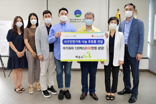 [½Åµ¿¾Æ¹æ¼Û=°­¼º´ë ±âÀÚ] ±¤ÁÖ ¼­±¸(±¸Ã»Àå ¼­´ë¼®)´Â 30ÀÏ ¿ÀÀü ÇϿ콺¸¾¸¶(´ëÇ¥ ¿À¼ºÈ¯)·ÎºÎÅÍ ÇÔ²² ³ª´©´Â º¹Áö°øµ¿Ã¼¸¦ À§ÇØ Àú¼Òµæ ¾Æµ¿¼¼´ë¸¦ À§ÇÑ ¾Æ±â°úÀÚ 120¹Ú½º(500¸¸¿ø »ó´ç)À» ±âŹ¹Þ°í ¾î·Á¿î ÀÌ¿ôÀ» À§ÇØ ÈÄ¿øÇØ Áֽŵ¥ ´ëÇØ °¨»çÀÇ ¸¶À½À» ÀüÇß´Ù.