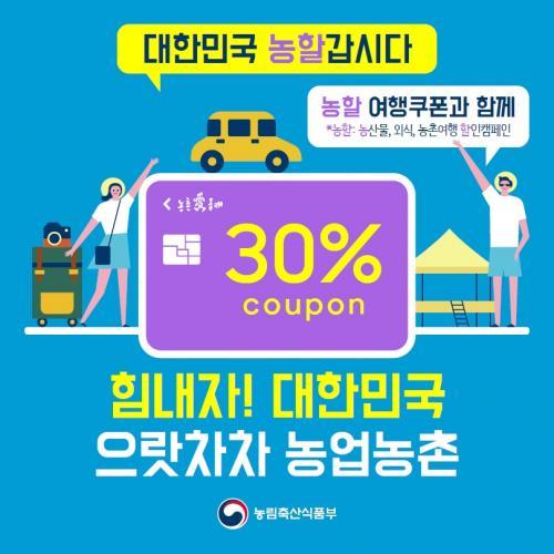 ¼ÒºñÀÚ°¡ ³óÃÌüÇè°ü±¤ »ç¾÷Àå¿¡ ¹æ¹®ÇØ ÇöÀå¿¡¼ ½Ä»ç, ¼÷¹Ú, üÇè ÇÁ·Î±×·¥ ÀÌ¿ë ¹× ³ó‧Ư»êǰ ±¸¸Å ½Ã Á¦ÈÞÄ«µå·Î °áÁ¦Çϸé ÃÖ´ë 3¸¸¿ø±îÁö 1Àδç ÀÌ¿ë¾×ÀÇ 30%ÀÇ ±Ý¾×À» û±¸ÇÒÀÎ ¹× ij½Ã¹é Çü½ÄÀ¸·Î ÇÒÀιÞÀ» ¼ö ÀÖ´Ù.