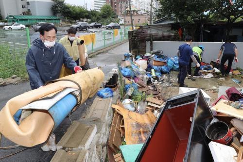 [½Åµ¿¾Æ¹æ¼Û=°¼º´ë ±âÀÚ] ±è»ïÈ£ ±¤»ê±¸Ã»ÀåÀÌ Áö³ 11ÀÏ °ø¹«¿øµé°ú ÁýÁßÈ£¿ì·Î ħ¼öµÈ ¼ÛÁ¤2µ¿ ½Å´ö¸¶À» ÁÖÅÃÀ» ã¾Æ ÇÇÇØº¹±¸¿¡ ³ª¼± ÁֹεéÀ» À§·ÎÇϰí, ¹°¿¡ Àá°Ü ¸ø¾²°Ô µÈ ÀåÆÇ°ú °¡±¸ µîÀ» Ä¡¿ì´Â µî ÀÌÀç¹ÎÀÇ ºü¸¥ ÀÏ»ó ã±â¸¦ µµ¿Ô´Ù°í 12ÀÏ ¹àÇû´Ù.
