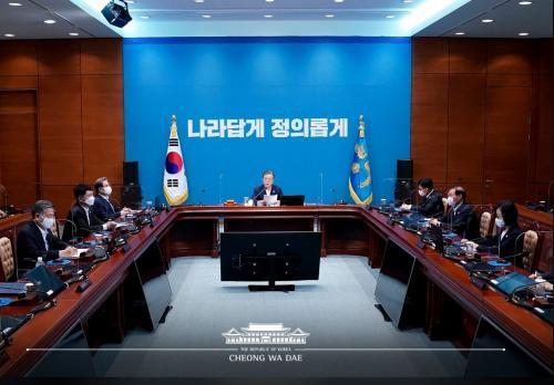 ¾Æ¿ï·¯ ¹®ÀçÀÎ ´ëÅë·ÉÀº "°èȹµÈ ÀçÁ¤À» ½Å¼ÓÇÏ°Ô ÁýÇàÇÏ´Â ³ë·Âµµ ÇÊ¿äÇÏ´Ù"¸ç "´çÀåÀÇ ¼öÇØ º¹±¸ Áö¿ø µî Ãß°¡ Àç¿øÀ» ÃÖ´ëÇÑ È®º¸ÇÏ¿© ½Å¼ÓÇÏ°Ô ÅõÀÔÇØ Áֱ⠹ٶõ´Ù"°í ¸»Çß´Ù. ¶Ç "ÀçÁ¤ ÀÌ¡¤ºÒ¿ëÀ» ÃÖ¼ÒÈÇÏ´Â ³ë·Â°ú ÇÔ²² 3Â÷ Ãß°æ ÁýÇà ½Ã±âµµ ¾Õ´ç°Ü¾ß ÇÑ´Ù"°í ¹àÈ÷¸é¼ ³¡À¸·Î ´ëÅë·ÉÀº "¹Ì·¡¸¦ À§ÇÑ ÅõÀÚ´Â ¾î¶² ¾î·Á¿òÀÌ À־ ¸ØÃßÁö ¸»¾Æ¾ß ÇÑ´Ù"¸ç Çѱ¹ÆÇ ´ºµôÀÇ Èçµé¸² ¾ø´Â ÃßÁøÀ» °Á¶Çß°í, ¹æ¿ª°ú °æÁ¦ ȸº¹¿¡ Á¤ºÎ ¿ª·®À» ÁýÁßÇØÁÙ °ÍÀ» °Åµì ´çºÎÇß´Ù. "ÇÊ¿äÇÏ´Ù¸é ´ëÅë·É ÁÖÀç ºñ»ó°æÁ¦È¸ÀǸ¦ °³ÃÖÇÒ ¼öµµ ÀÖ´Ù"°í µ¡ºÙ¿´´Ù.