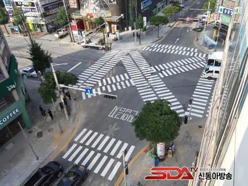 ´ë°¢¼± Ⱦ´Üº¸µµ´Â ±âÁ¸ Ⱦ´Üº¸µµ À̿ܿ¡µµ XÀÚ ÇüÅÂÀÇ È¾´Üº¸µµ¸¦ ¼³Ä¡ÇØ Â÷·® ½ÅÈ£µîÀÌ Àû»ö½ÅÈ£·Î ¹Ù²î¸é º¸ÇàÀÚ°¡ Á÷¼± ¶Ç´Â ´ë°¢¼± ¾îµð·Îµç ÇÑ ¹ø¿¡ °Ç³Î ¼ö ÀÖ¾î Æí¸®ÇÏ´Ù.