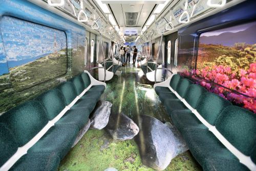 Å׸¶¿Â÷´Â ¹Ù´Ú°ú õÀå µî Â÷·®³»ºÎ °ø°£ Àüü¸¦ ¹«µî»ê »ç°è(ÞÌÌù) dz°æ°ú °Å¸®ÆÛ·¹ÀÌµå µî ¿ªµ¿ÀûÀÎ ÃàÁ¦ ¸ð½ÀÀ¸·Î ·¦ÇÎÇØ ¿ÜÁö ¹æ¹®°´µéÀÌ ±¤ÁÖ¸¦ ´ëÇ¥ÇÏ´Â µµ½ÃÀ̹ÌÁö¸¦ ÇÑ ´«¿¡ »õ±æ ¼ö ÀÖµµ·Ï Çß´Ù. Å׸¶¿Â÷´Â ¾ÕÀ¸·Î ÃÖ´ë 5³â °£ ¿îÇàµÉ ¿¹Á¤ÀÌ´Ù.