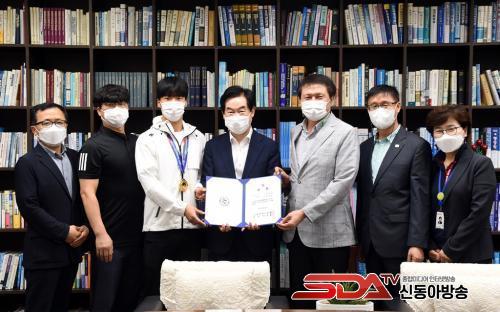 [½Åµ¿¾Æ¹æ¼Û=±¸µ¿Çö ±âÀÚ] ÀÇÁ¤ºÎ½Ã´Â 8¿ù 31ÀÏ Á¦50ȸ ´ëÅë·É¹è Àü±¹ ½Ã µµº¹½Ì ´ëȸ¿¡¼­ ¿ì¼öÇÑ ¼ºÀûÀ» °ÅµÐ È¿ÀÚ°íµîÇб³ 3Çгâ Àü½ÂÇö ¼±¼ö¸¦ °Ý·ÁÇß´Ù.