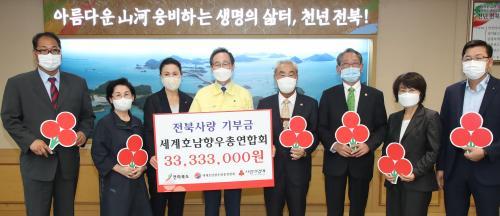 [½Åµ¿¾Æ¹æ¼Û=°¼º´ë ±âÀÚ] 3ÀÏ ÀüºÏµµÃ» ȸÀǽǿ¡¼ ¿¸° ¼¼°èÈ£³²Çâ¿ìȸ ÃÑ¿¬ÇÕȸ ¼öÇØÇÇÇØ ¼º±Ý ¹× ÀåÇÐ±Ý Àü´Þ½Ä¿¡ ¼ÛÇÏÁø ÀüºÏµµÁö»ç¿Í ±è¿µÀ± ¼¼°èÈ£³²Çâ¿ìȸ ÃÑ¿¬ÇÕȸÀå ¹× ¿ª´ë ȸÀå´Ü, ¼¿µ¼÷ ÀüºÏ»çȸº¹Áö°øµ¿¸ð±Ýȸ »ç¹«Ã³Àå µî Âü¼®ÀÚµéÀÌ ¼öÇØ·Î ÇÇÇØ¸¦ ÀÔÀº °íÇâÀ» À§ÇÑ º¹±¸¼º±Ý°ú Áö¿ª û¼Ò³â ÀåÇбÝÀ» ±âŹÇÏ°í ±â³äÃÔ¿µÀ» Çϰí ÀÖ´Ù.