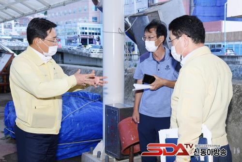 [½Åµ¿¾Æ¹æ¼Û=±è±â³² ±âÀÚ] ±Ç¿ÀºÀ ¿©¼ö½ÃÀåÀÌ 3ÀÏ ¿ÀÀü ÅÂdz ¸¶ÀÌ»èÀ¸·Î ¹Ù´Ú ÀϺΰ¡ ħ¼öµÈ ±³µ¿½ÃÀå Àϴ븦 µÑ·¯º¸¸ç ÇÇÇØÇöÀåÀ» Á¡°ËÇϰí ÀÖ´Ù.