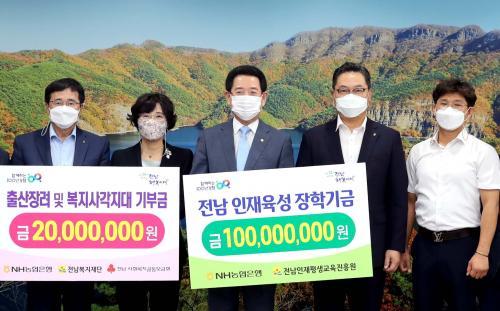 NH³óÇùÀºÇà Àü³²¿µ¾÷º»ºÎ´Â Àü³²ÀÎÀçÀ°¼ºÀ» À§ÇÑ ±â±ÝÀ¸·Î 1¾ï ¿øÀ», Ãâ»êÀå·Á ¹× º¹Áö»ç°¢Áö´ë¸¦ À§ÇÑ ±âºÎ±ÝÀ¸·Î 2õ¸¸¿øÀ» ±âŹÇß´Ù.