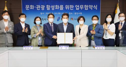 ¿ëÀνô 10ÀÏ ½Ãû ½ÃÀå½Ç¿¡¼ ¹é±º±â ¿ëÀνÃÀå, ±èÈ«Àå ´çÁø½ÃÀå, ±èº¸¶ó ¾È¼º½ÃÀåÀÌ ¡®¹®È°ü±¤ Ȱ¼ºÈ¸¦ À§ÇÑ ¾÷¹«Çù¾à¡¯À» ü°áÇß´Ù°í ¹àÇû´Ù.