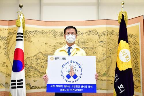 '½ºÅ×ÀÌ ½ºÆ®·Õ' Ä·ÆäÀÎÀº µÎ ¼ÕÀ» ¸ð¾Æ ±âµµÇÏ´Â ±×¸²¿¡ ºñ´© °ÅǰÀ¸·Î ¼ÕÀ» ¾Ä´Â ·Î°í À§·Î '½ºÅ×ÀÌ ½ºÆ®·Õ'À̶õ ¹®±¸¸¦ Àû¾î öÀúÇÑ °³ÀÎÀ§»ý °ü¸®·Î Äڷγª19¸¦ ÇÔ²² À̰ܳ»ÀÚ´Â Àǹ̸¦ ´ã°í ÀÖ´Ù°í ¹àÇû´Ù.