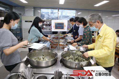 16ÀÏ Á÷¿ø ä½ÄÀÇ ³¯À» ¸Â¾Æ ½Ä´ÜÀº Ã볪¹°°ß°ú·ù¹ä¿¡ ÄáºñÁö±èÄ¡Àü, ¾ç¹èÃß³ª¹°, ´Ü¹«Áö¹«Ä§ÀÌ, ÈĽÄÀ¸·Î ¹Ù³ª³ª°¡ Á¦°øµÆ´Ù. À̳¯ °æ³²±³À°Ã» Á÷¿ø 500¿© ¸íÀº ä½Ä ½Ä´ÜÀ¸·Î °Ç°°ú ȯ°æÀ» ÇÔ²² ì°å´Ù°í ÀüÇß´Ù.