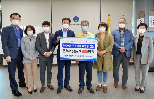 [½Åµ¿¾Æ¹æ¼Û=°¼º´ë ±âÀÚ] ±¤ÁÖ ¼±¸(±¸Ã»Àå ¼´ë¼®)´Â 22ÀÏ ¿ÀÈÄ Çѱ¹ÀÚ»ê°ü¸®°ø»ç ±¤ÁÖÀü³²º»ºÎ(º»ºÎÀå ȫâÀÇ)·ÎºÎÅÍ Ãß¼® ¸íÀýÀ» ¸Â¾Æ µûµíÇÑ ¼±¸ º¹Áö°øµ¿Ã¼¸¦ ¸¸µé±â À§ÇØ °ü³» º¹Áö½Ã¼³¿¡ Àü´ÞÇÒ ¿Â´©¸®»óǰ±Ç(600¸¸¿ø)À» Àü´Þ¹Þ°í ¾î·Á¿î ÀÌ¿ôÀ» À§ÇØ ÈÄ¿øÇØ Áֽŵ¥ ´ëÇØ °¨»çÀÇ ¸¶À½À» ÀüÇß´Ù.