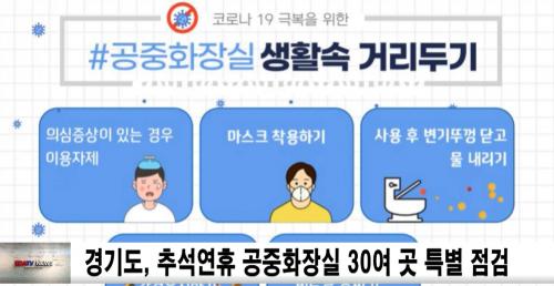°æ±âµµ´Â ¿ì¼± Äڷγª19 µî °¨¿°º´ ¿¹¹æÀ» À§ÇÑ ¡®»ýȰ ¼Ó °Å¸®µÎ±â¡¯¿¡ µû¶ó ÀÏ 1ȸ ÀÌ»ó °øÁßÈ­Àå½Ç ¼Òµ¶°ú ¹æ¿ª°ü¸®Ã¥ÀÓÀÚ ÁöÁ¤ ¿©ºÎ, È­Àå½Ç ÃâÀÔ±¸ ¹× ¼¼¸é´ë ¹Ù´Ú µî¿¡ 2m ÁÙ¼­±â °£°Ý Ç¥½Ã µîÀ» Á¡°ËÇÑ´Ù.