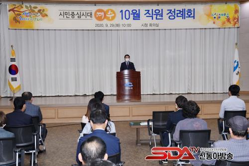 ¿©¼ö½Ã´Â Áö³ 3¿ùºÎÅÍ ¿©¼ö¹®ÈȦ¿¡¼ °³ÃÖÇÏ´ø Á÷¿ø Á¤·Êȸ¸¦ Äڷγª19 È®»ê ¿¹¹æÀ» À§ÇØ ½Ãû »óȲ½Ç¿¡¼ ºñ´ë¸é ¿µ»óȸÀÇ·Î °³ÃÖÇØ ¿Ô´Ù.