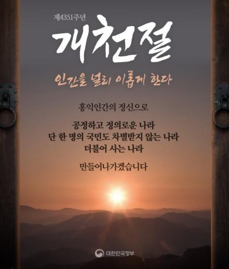 ¿ì¸®³ª¶óÀÇ °Ç±¹À» ±â³äÇϱâ À§ÇÏ¿© Á¦Á¤ÇÑ ±¹°æÀÏÀÌÀÚ, ¹Ý¸¸³â Àü ´Ü±ºÀÌ ¿Õ°Ë¼º¿¡ µµÀ¾À» Á¤ÇÏ°í ³ª¶ó À̸§À» Á¶¼±(ðÈàØ)À̶ó Áþ°í ÁïÀ§ÇÑ ³¯·Î, ´Ü±ºÀ» ¸ð½Ã´Â ´ëÁ¾±³(ÓÞðòÎç)´Â ÀϺ»Á¦±¹ÁÖÀÇ °Á¡±â¿¡ °³ÃµÀý Çà»ç·Î ¹ÎÁ·ÀǽÄÀ» °íÃëÇÏ´Â µ¥ ±â¿©ÇßÀ¸¸ç, »óÇØ ÀÓ½ÃÁ¤ºÎ¿¡¼´Â °³ÃµÀýÀ» ±¹°æÀÏ·Î Á¤ÇØ °æÇϽÄÀ» Çß°í, Áß°æ(ñìÌÔ) µî Áß±¹ °¢Áö¿¡¼µµ ´ëÁ¾±³¿Í ÇÕµ¿À¸·Î °æÃàÇà»ç¸¦ ÇÑ ¹è´Þ¹ÎÁ·ÀÇ ¸íÀýÀÌ´Ù.