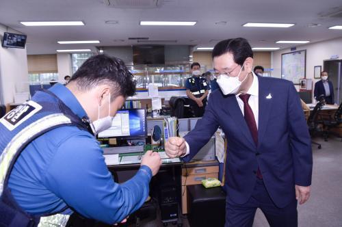 ÀÌ ½ÃÀåÀº ¼øÂû¡¤¹æ¹ü µîÀÇ Ä¡¾ÈȰµ¿Àº ¹°·Ð Äڷγª19 ´ëÀÀ±îÁö ½Ã¹ÎÀÇ ¾ÈÀüÀ» À§ÇØ °í»ýÇÏ´Â ±Ù¹«ÀÚµéÀ» À§·ÎÇÏ°í ºóÆ´¾ø´Â Äڷγª19 ´ëÀÀż¼¸¦ È®¸³ÇØ ÁÙ °ÍÀ» ´çºÎÇß´Ù. ¶Ç ÇöȲ ûÃë ÈÄ °ü°èÀÚµé°ú ÇÔ²² ¹®Èï119¼¾Å͸¦ µÑ·¯ºÃ´Ù.